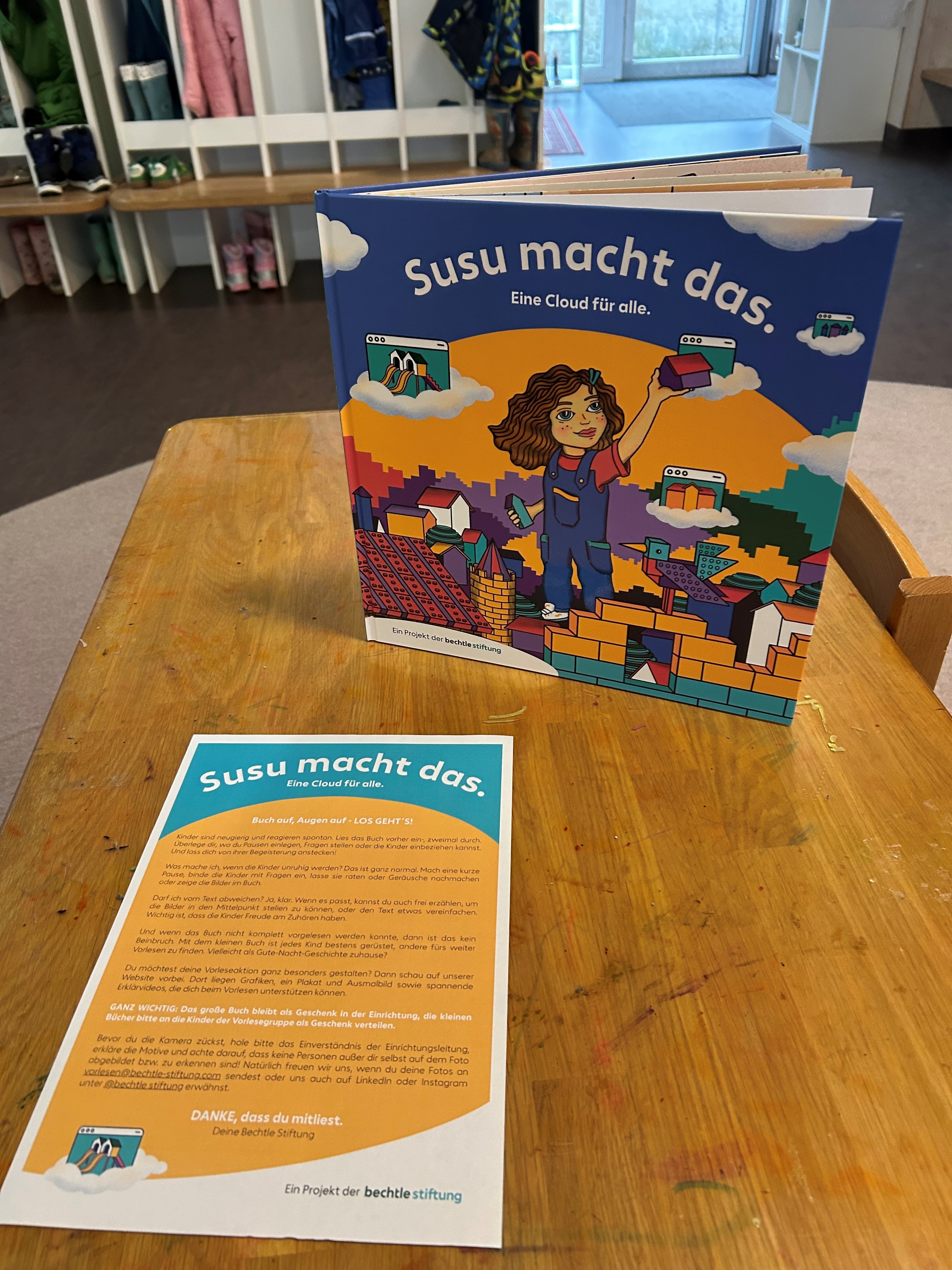Die Bechtle Stiftung beteiligte sich mit dem eigens entwickelten Kinderbuch "Susu macht das. Eine Cloud für alle." am 22. Bundesweiten Vorlesetag. 207 soziale Einrichtungen deutschlandweit machten in ihren Regalen Platz für Susus Geschichte. Susu wurde 598-mal vorgelesen und erobert dank euch 10.000 Kinderzimmer! Der Aktionstag ist eine Initiative von DIE ZEIT, Stiftung Lesen und der Deutsche Bahn Stiftung.